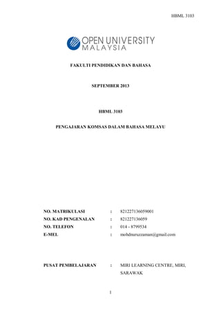 Hbml 3103 Pengajaran Komsas Dalam Bahasa Melayu September 2013